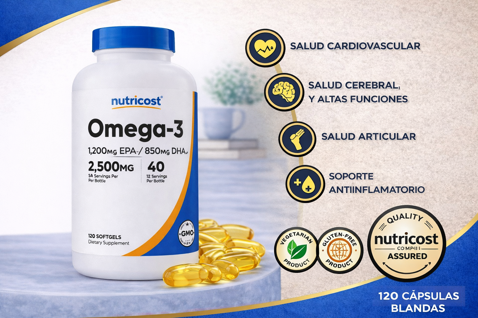 Los omega-3 son grasas saludables que contribuyen al mantenimiento de la salud cardiovascular, el funcionamiento del cerebro y el bienestar general. También se asocian con beneficios para la salud ocular, el equilibrio metabólico y la recuperación física.