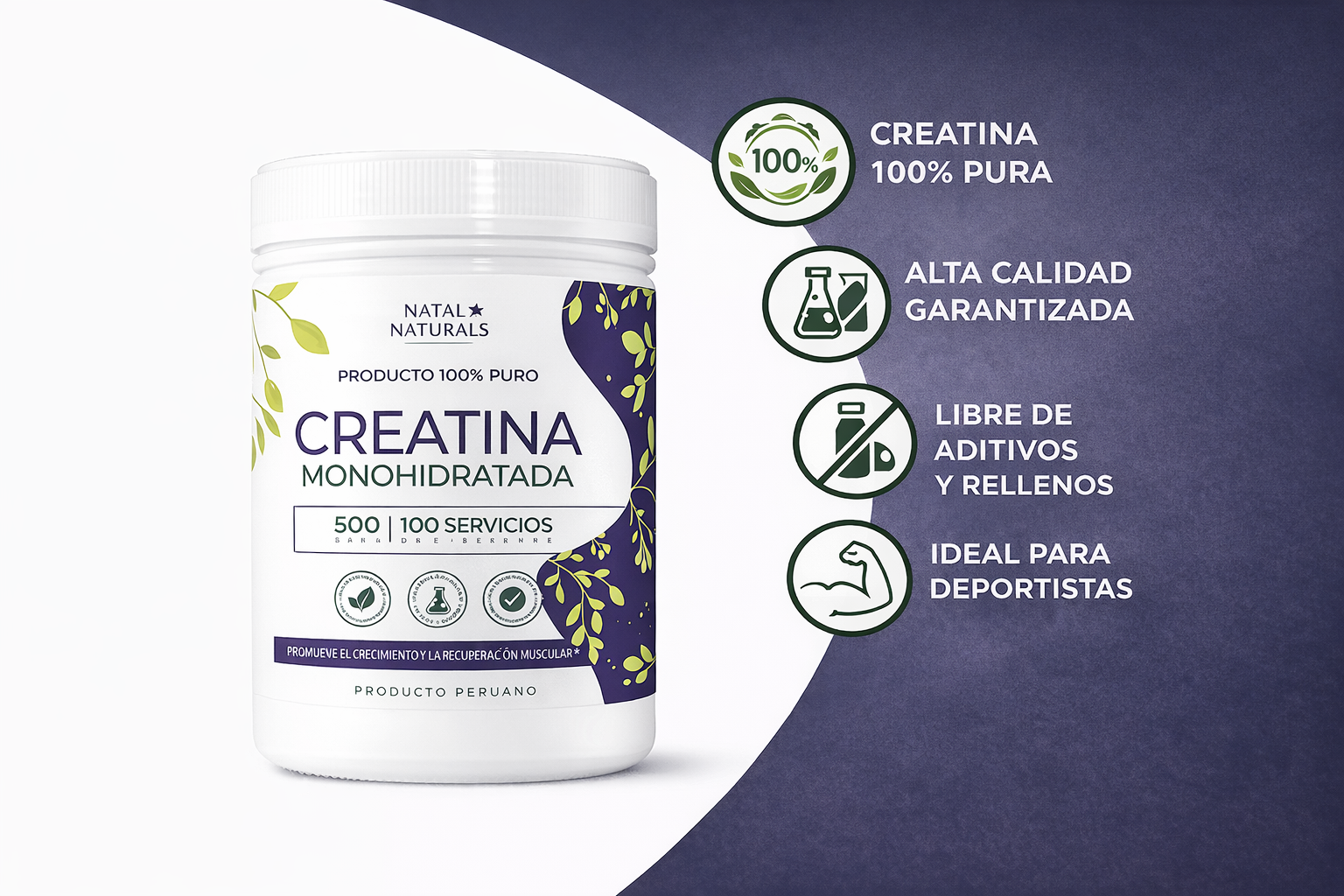 La Creatina Monohidratada Natal Naturals 500 g es un suplemento de uso deportivo, reconocido por su eficacia y respaldo científico. Ideal para personas activas que buscan mejorar su rendimiento físico, apoyar el desarrollo muscular y optimizar la recuperación como parte de una rutina de entrenamiento y una alimentación equilibrada.