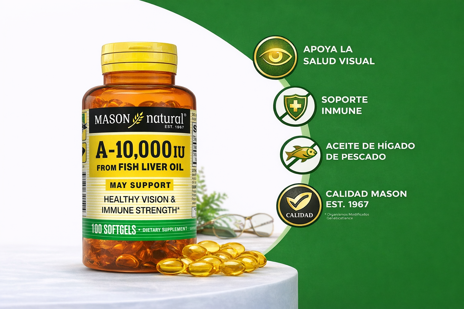 Vitamina A 10,000 IU – 100 Cápsulas Blandas | Mason Natural